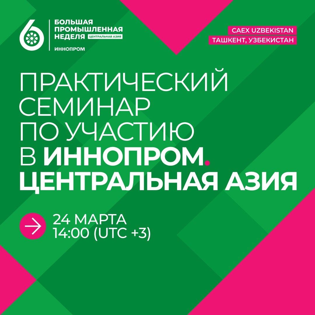 24 марта в 14.00 (время московское) состоится онлайн-семинар, посвященный подготовке к участию в Международной промышленной выставке «ИННОПРОМ. Центральная Азия». Его спикерами станут Заместитель Торгового представителя РФ в Узбекистане Игорь Камынин, Программный директор "ИННОПРОМ. Центральная Азия" Антон Атрашкин и Руководитель деловой программы "ИННОПРОМ. Центральная Азия" Василий Туганов.